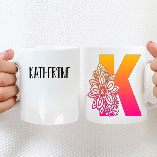 Floral Alphabet K, Personalized Mug, Ceramic Mug