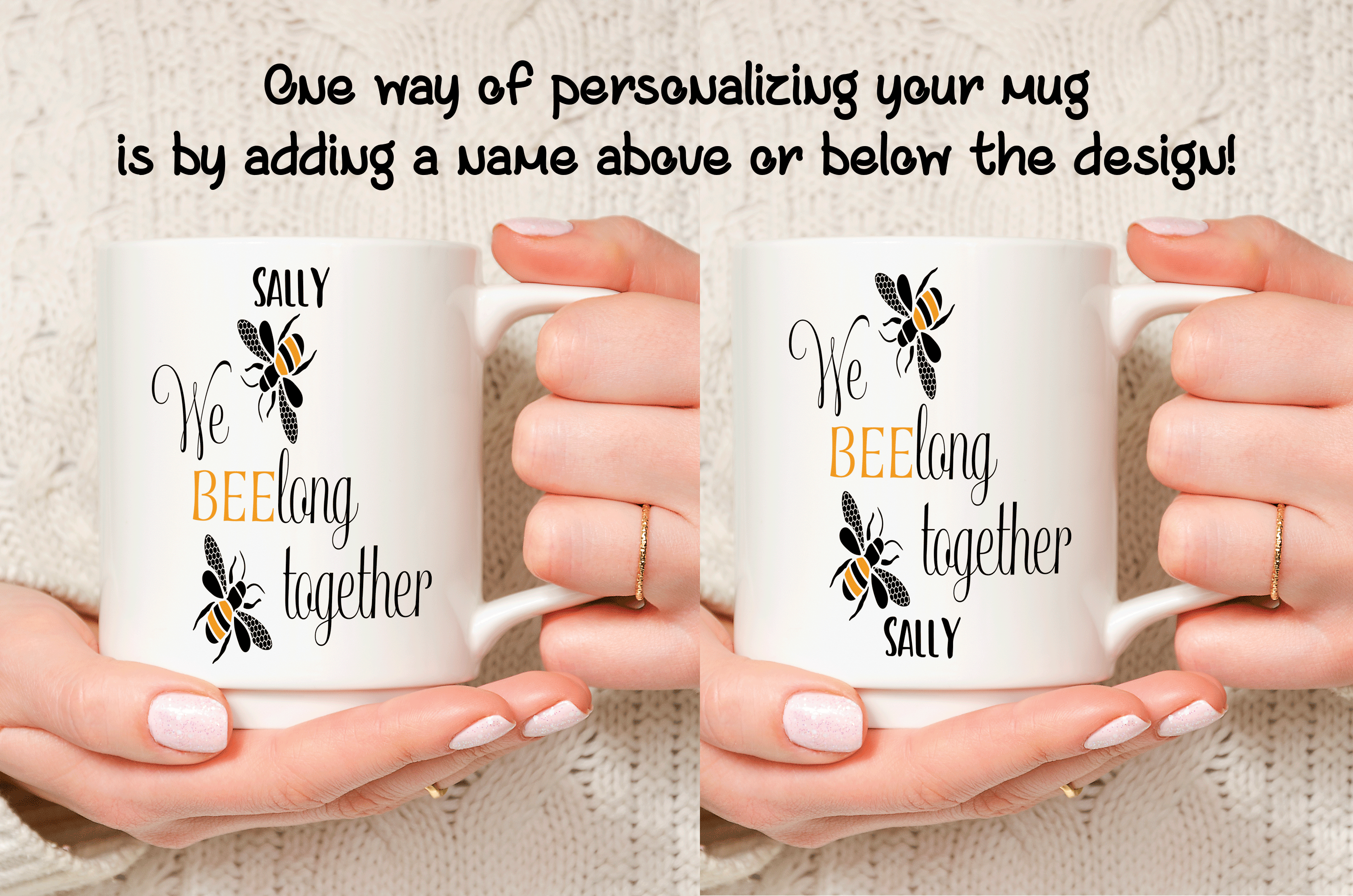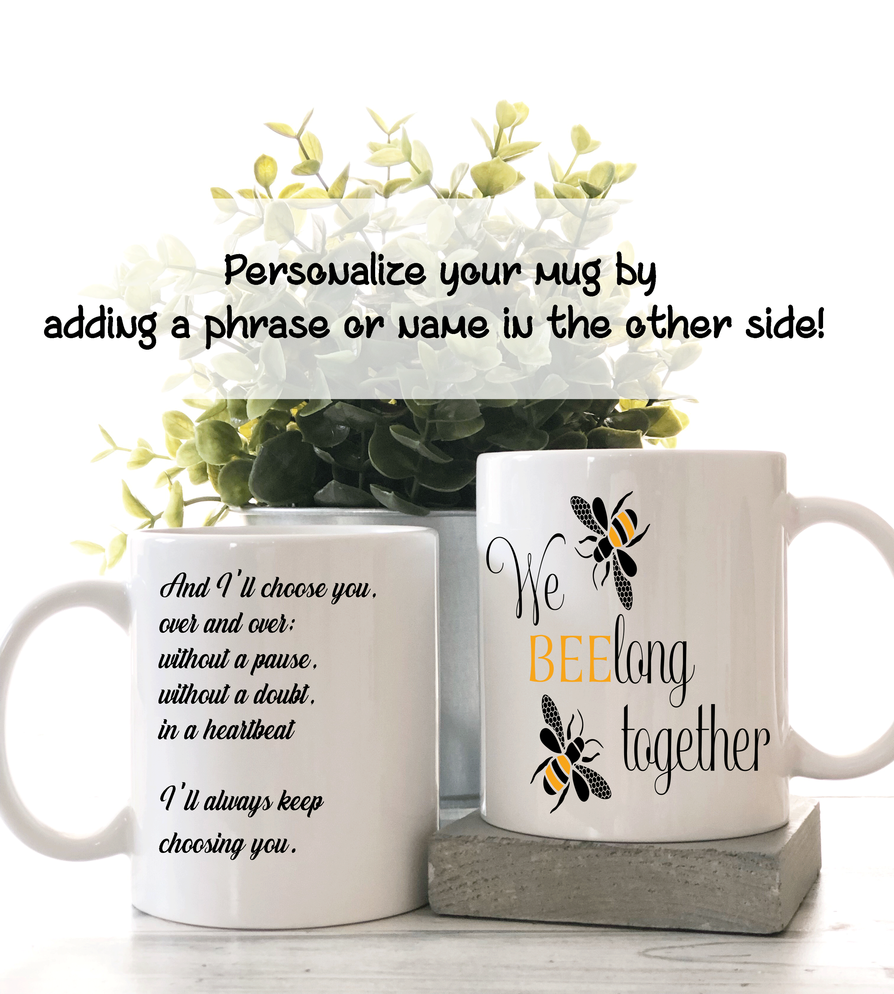 We will print your couples mug on both sides, and you can choose to put in the back a name, phrase, or both. You can also add the name at the bottom of the design if you want! Please help us by providing us as much information as possible in the personalized text box, and we will take care of the rest. It’s your personalized mug, so you get to design it as you wish!