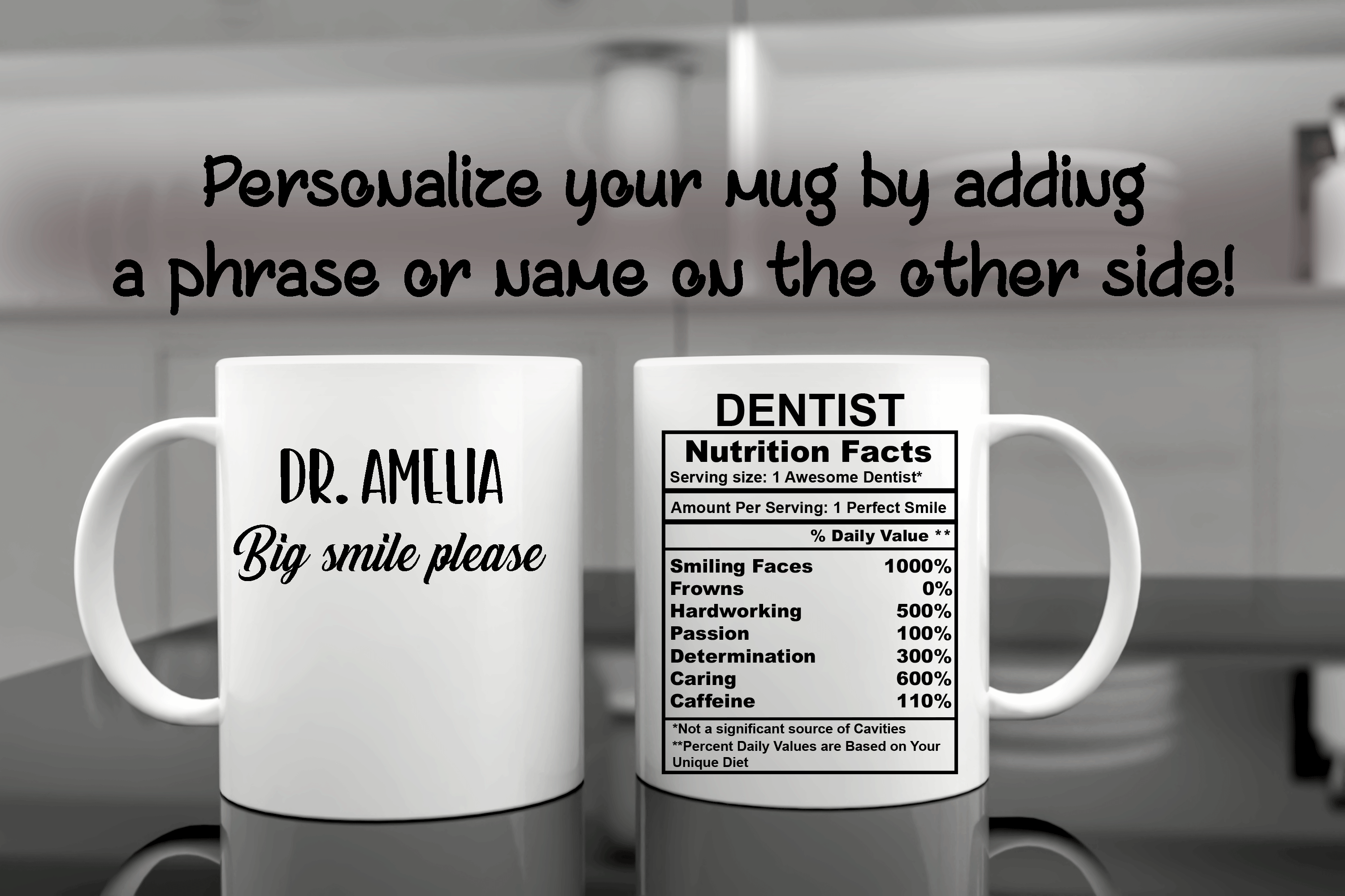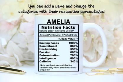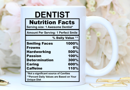 Dentist Nutrition Facts, Personalized Mug, Ceramic Mug