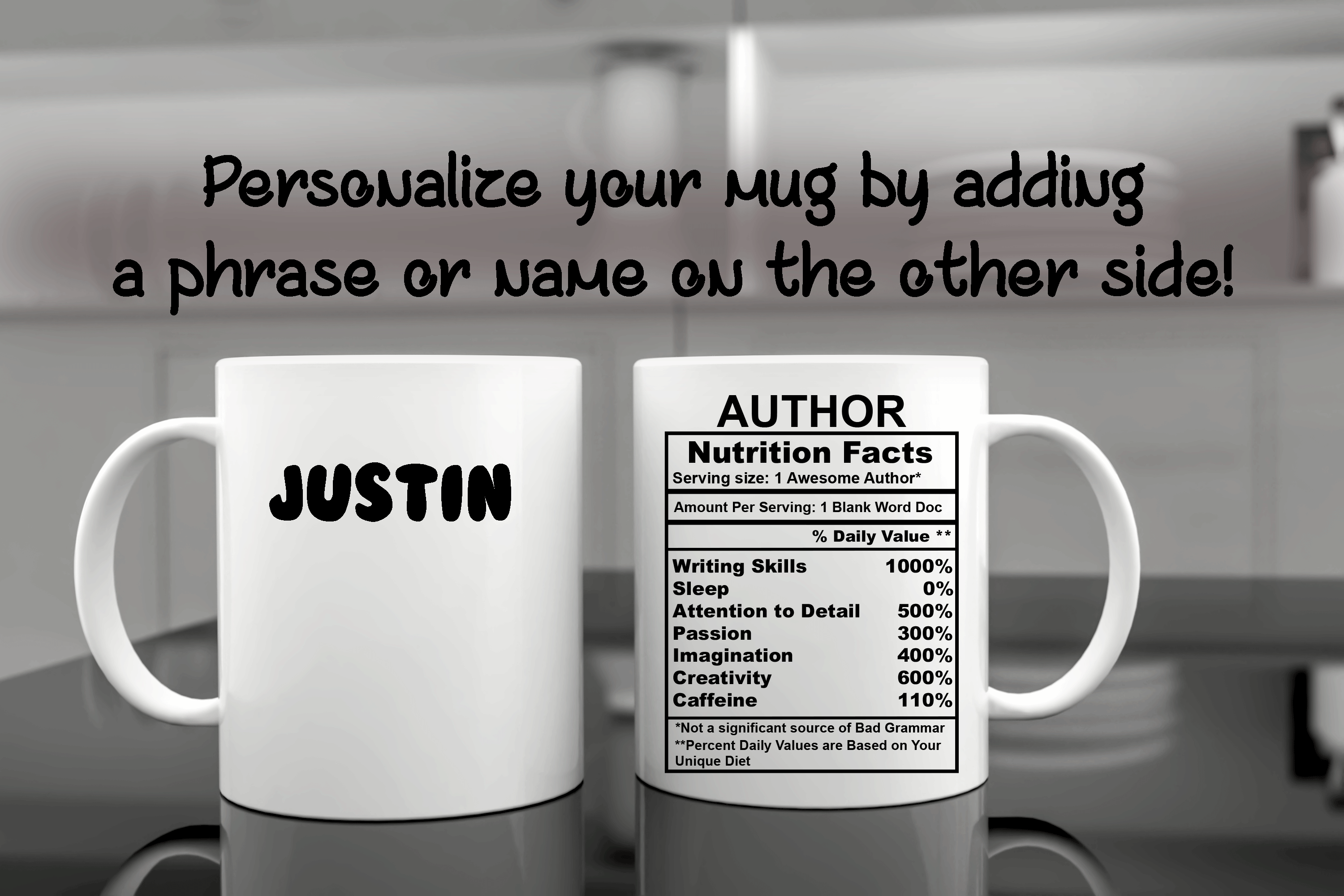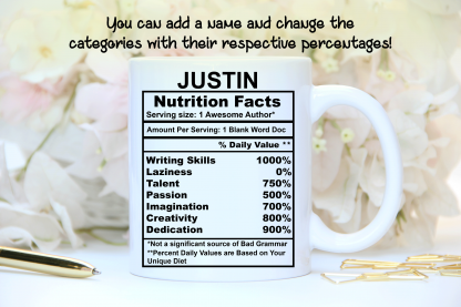 Author Nutritition Facts, Personalized Mug, Ceramic Mug