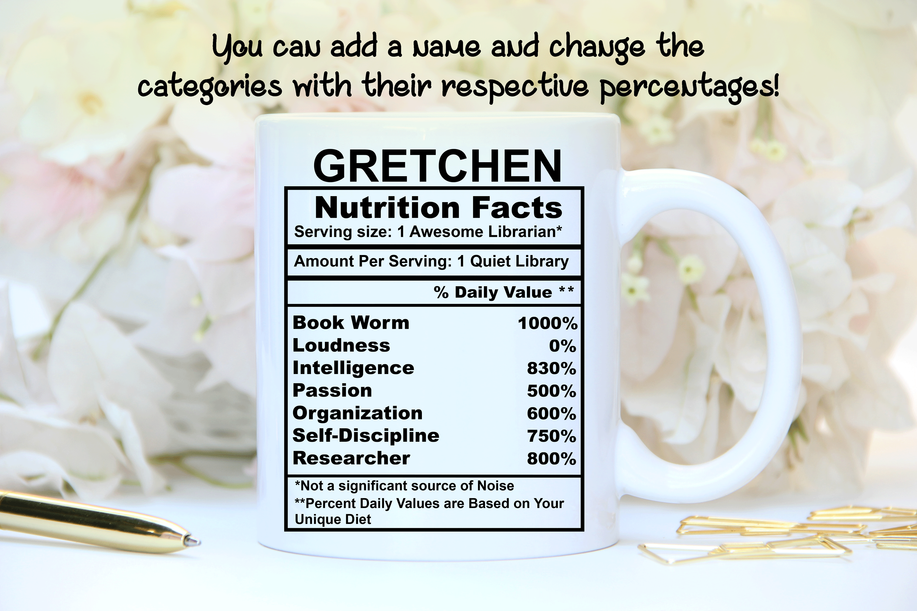 Librarian Nutrition Facts, Personalized Mug, Ceramic Mug