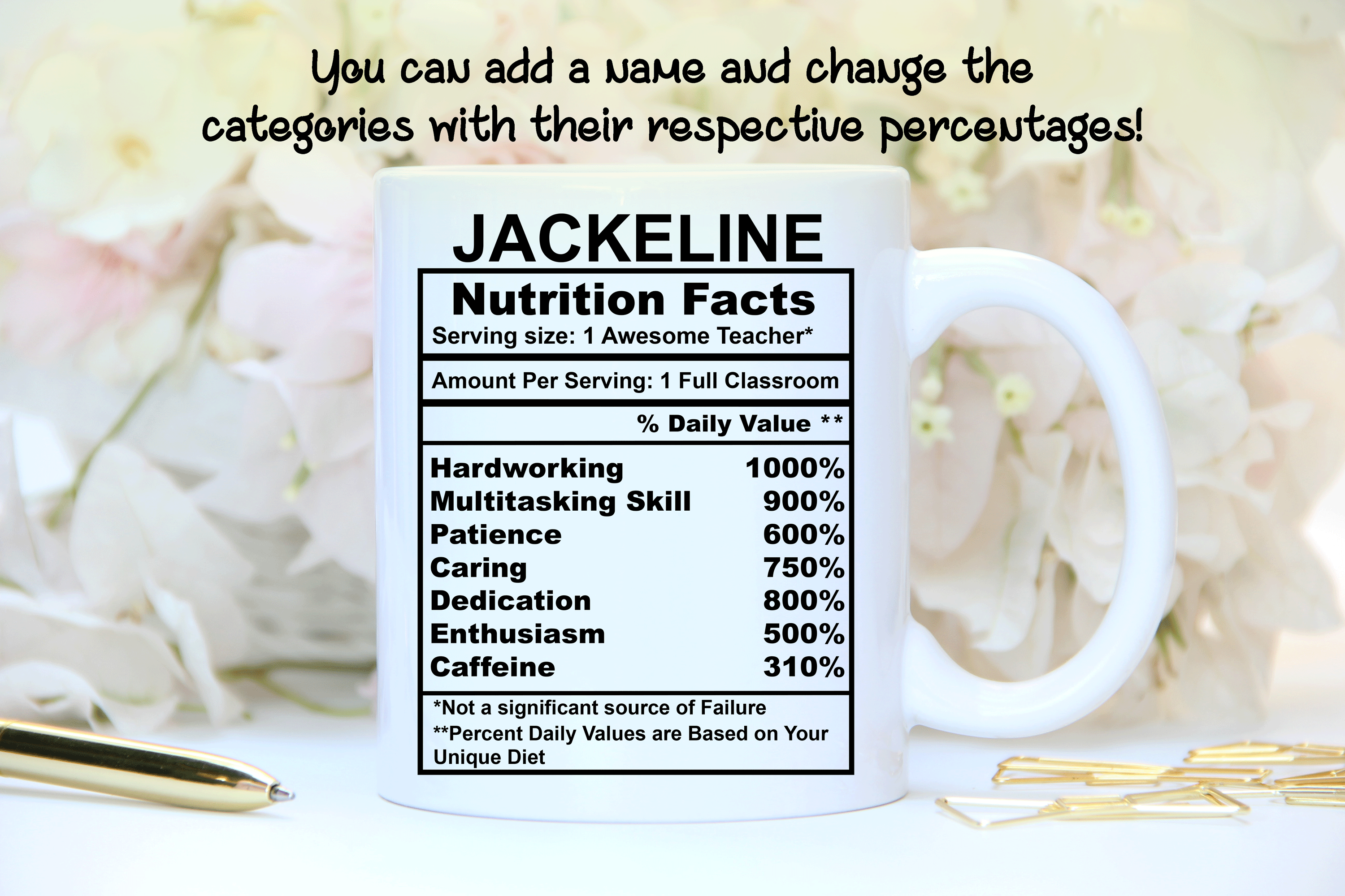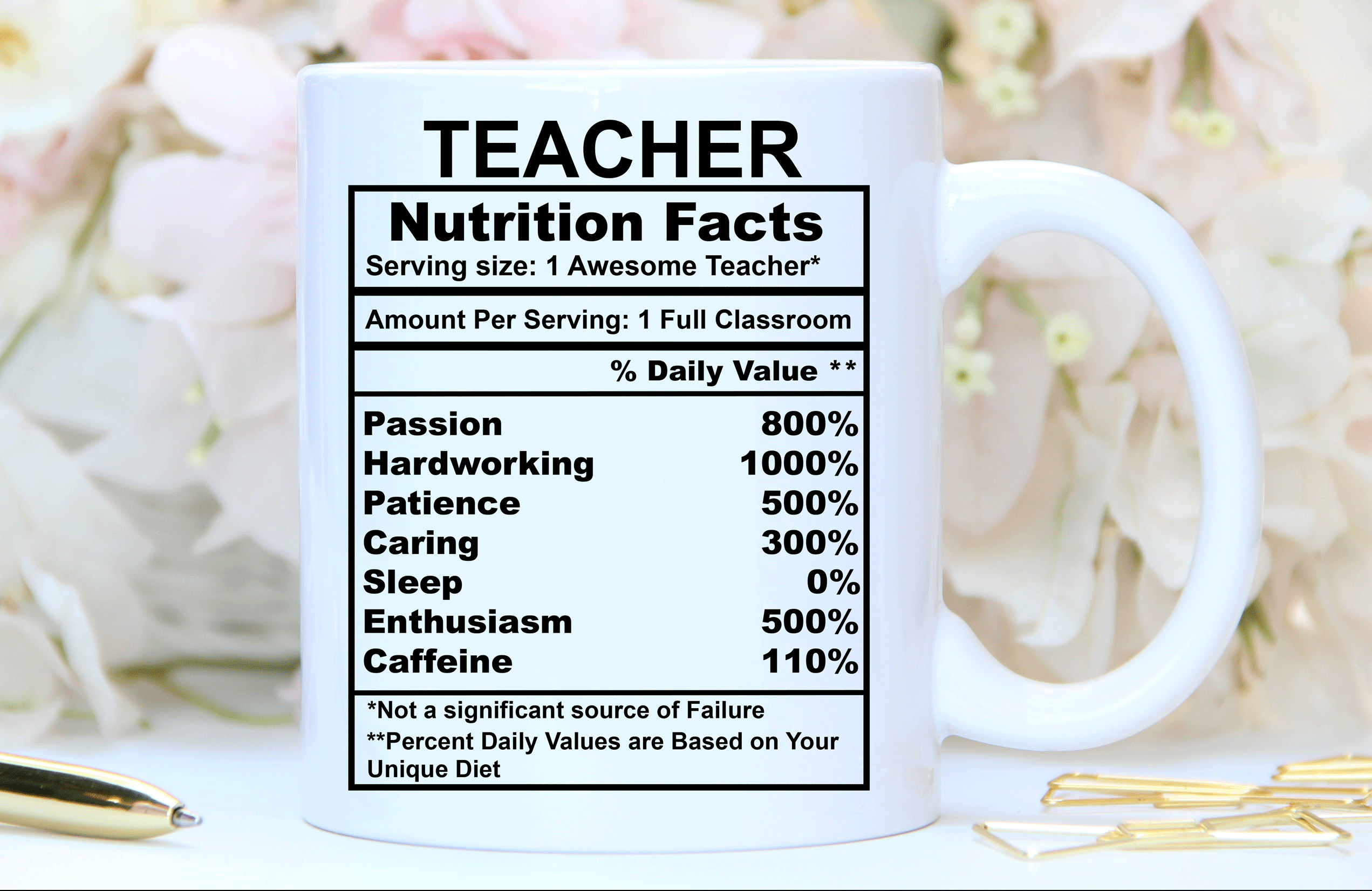 Teacher Nutrition Facts, Personalized Mug, Ceramic Mug