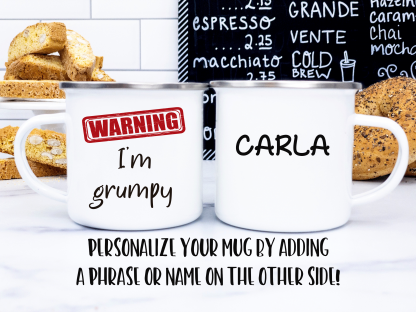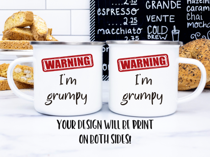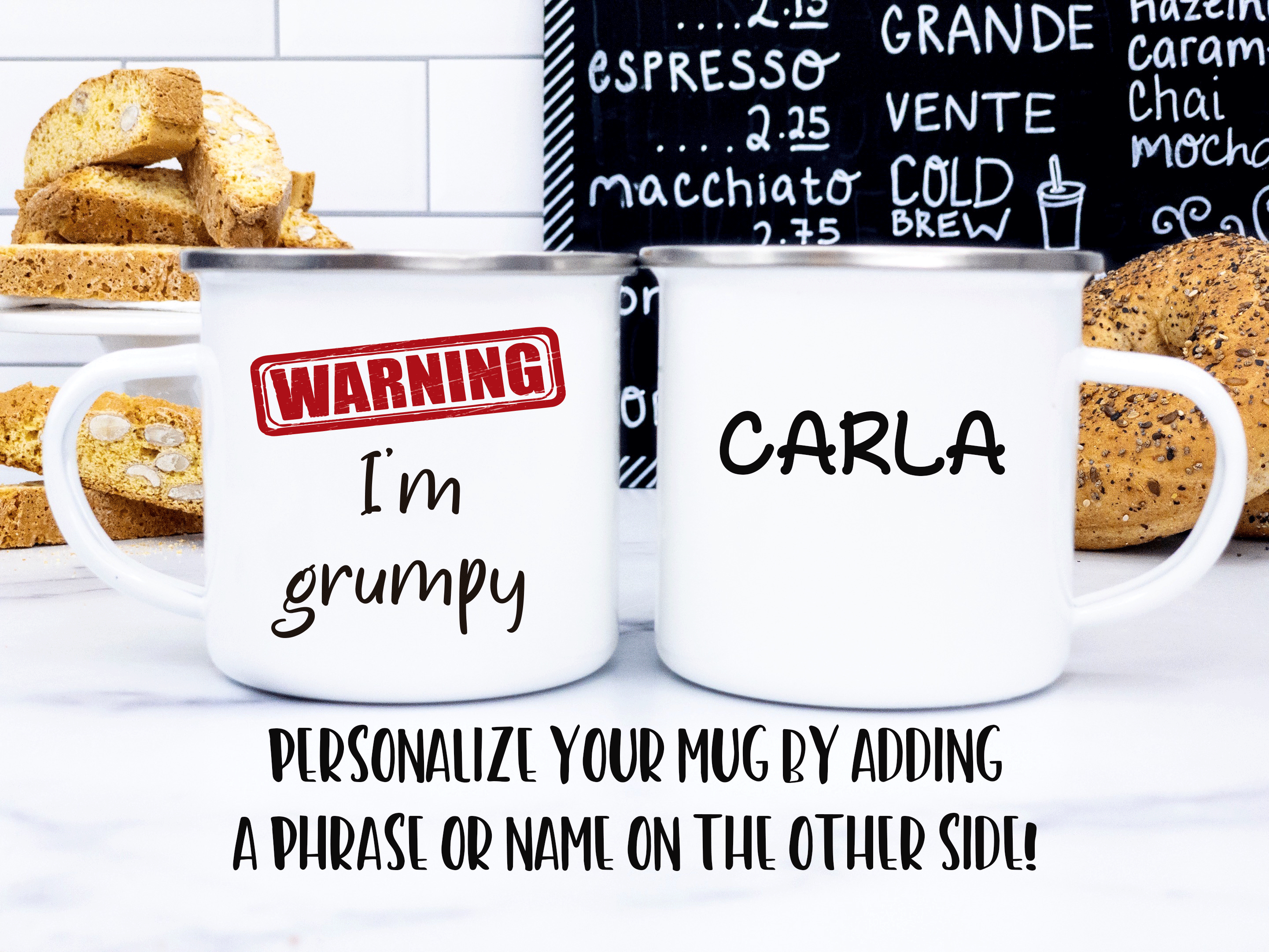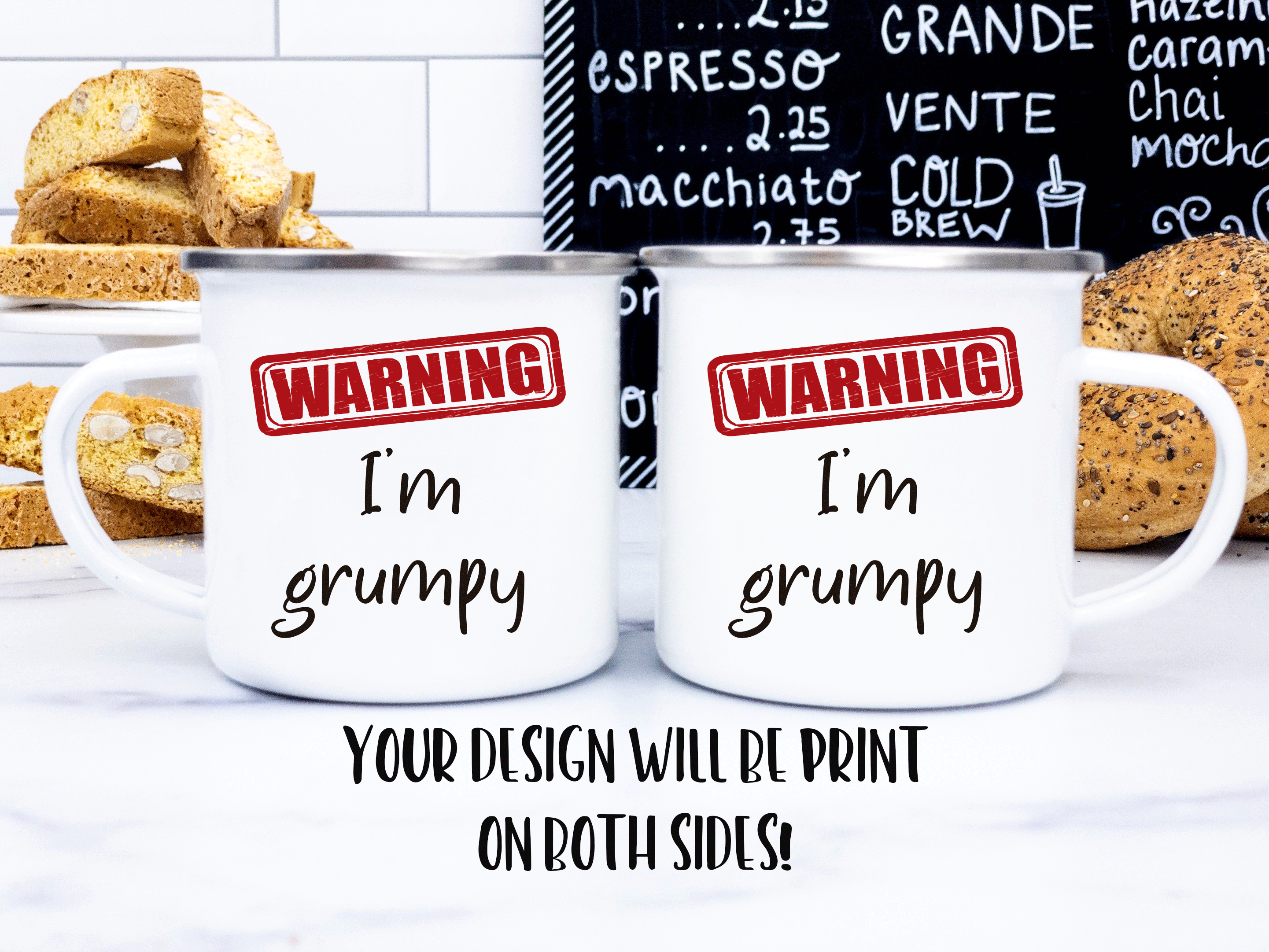 “Warning, I’m grumpy” Mug, Custom Mug, Enamel Mug