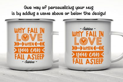 This quote mug “Why fall in love when you can fall asleep” will put a big smile on the ones you love every time they serve in their mug!