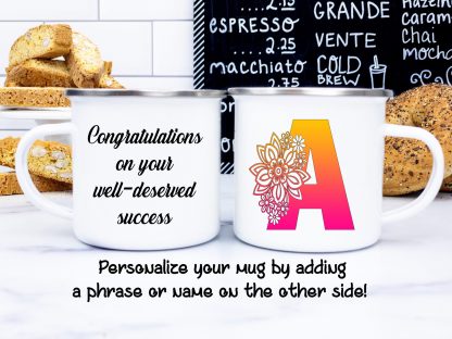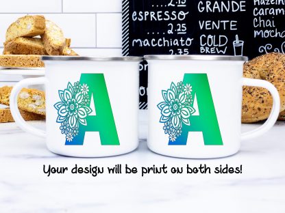 The floral letter Alphabet Mug is a customized mug where you can choose any of the 4 A’s letter designs. By default, we will print your mug on both sides. You can choose to put in the back a name, phrase, or both. You can also add the name at the bottom or top of the letter A if you want. It’s your personalized mug, so you get to design it as you wish! Please help us by providing us as much information as possible in the personalized text box. We will take care of the rest!