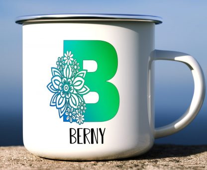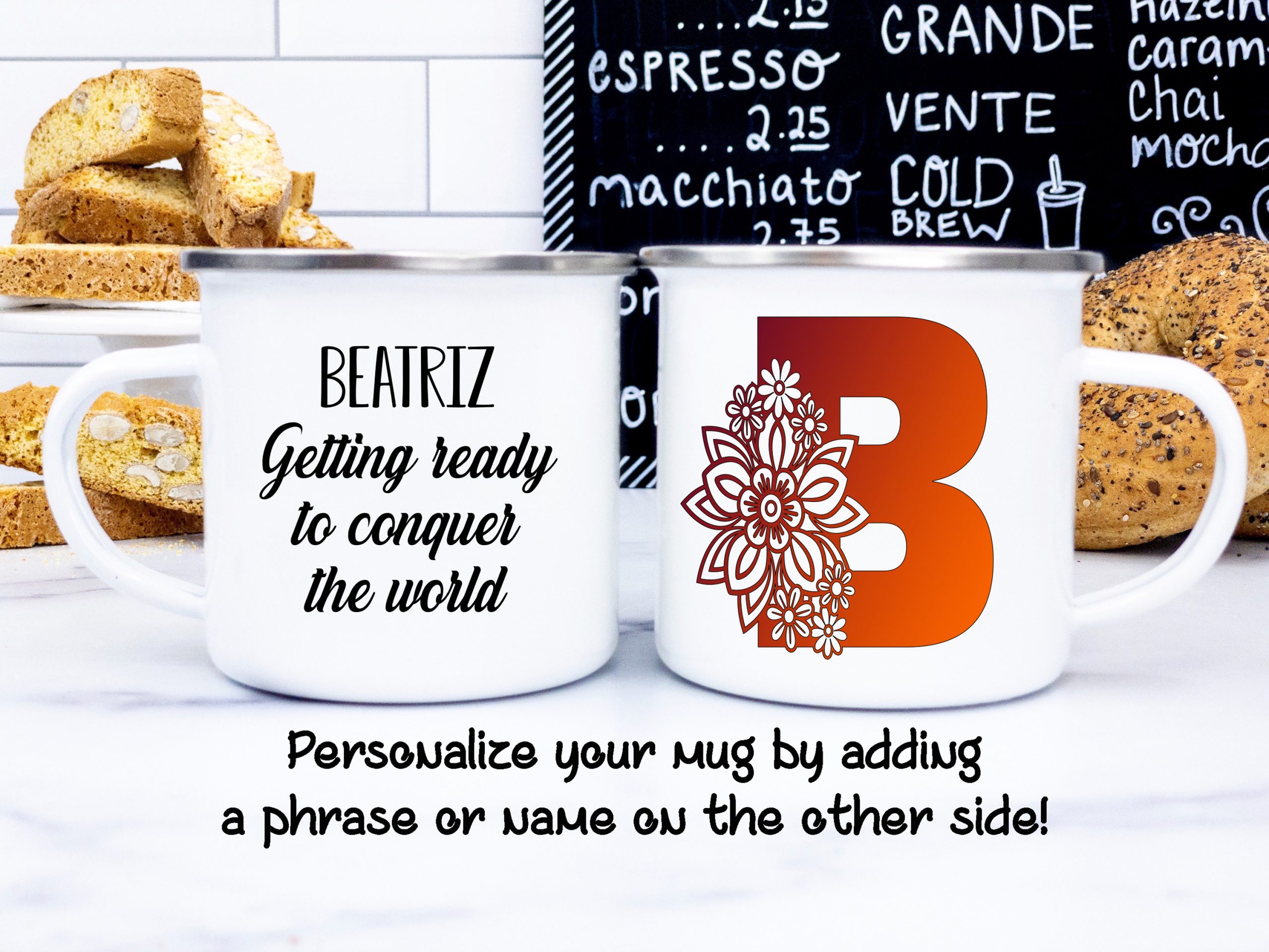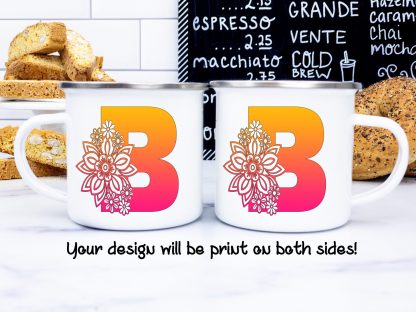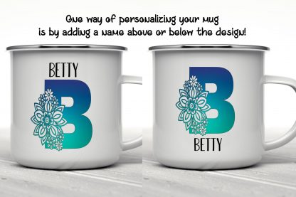 Floral Alphabet B, Customizable Mug, Enamel Mug