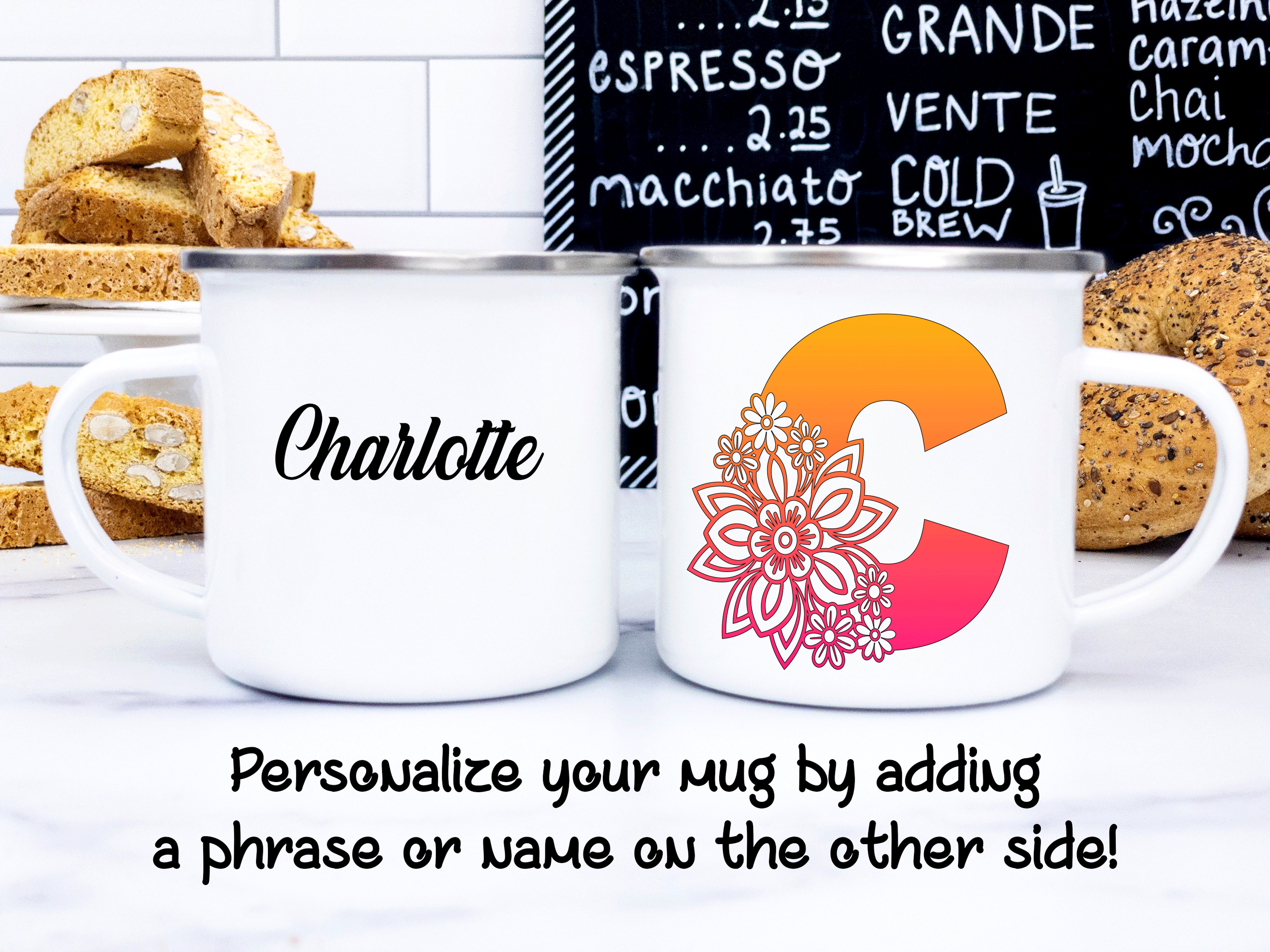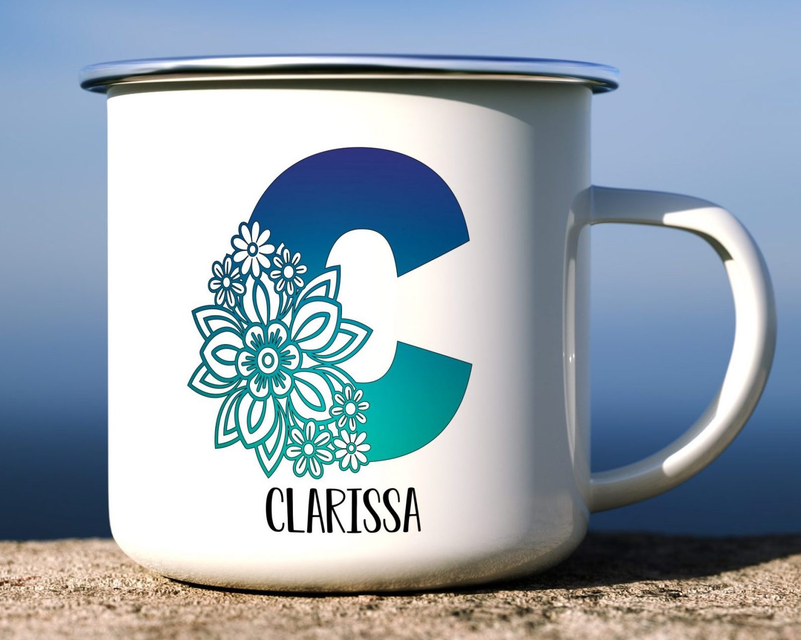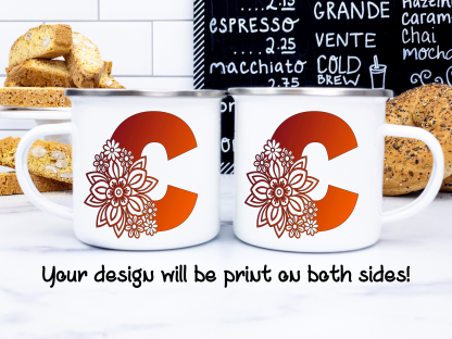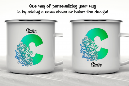 Floral Alphabet C, Customized Mug, Enamel Mug