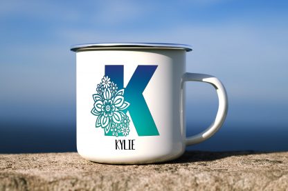 Floral Alphabet K, Customizable Mug, Enamel Mug