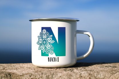 Floral Alphabet N, Customizable Mug, Enamel Mug