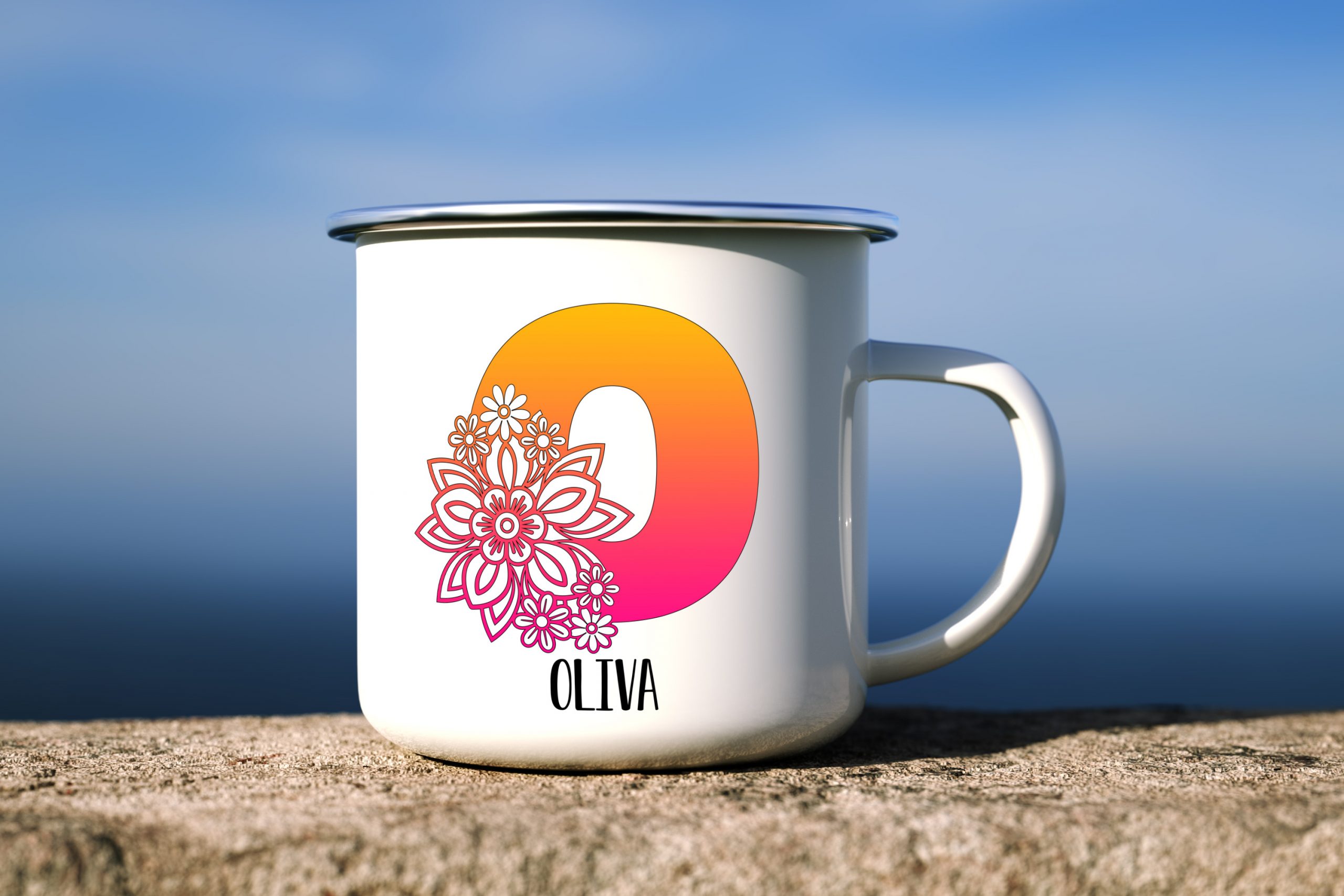 Floral Alphabet O, Customizable Mug, Enamel Mug