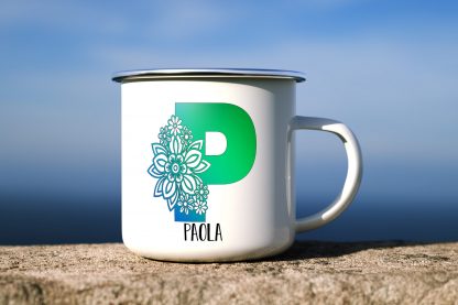 Floral Alphabet P, Customizable Mug, Enamel Mug