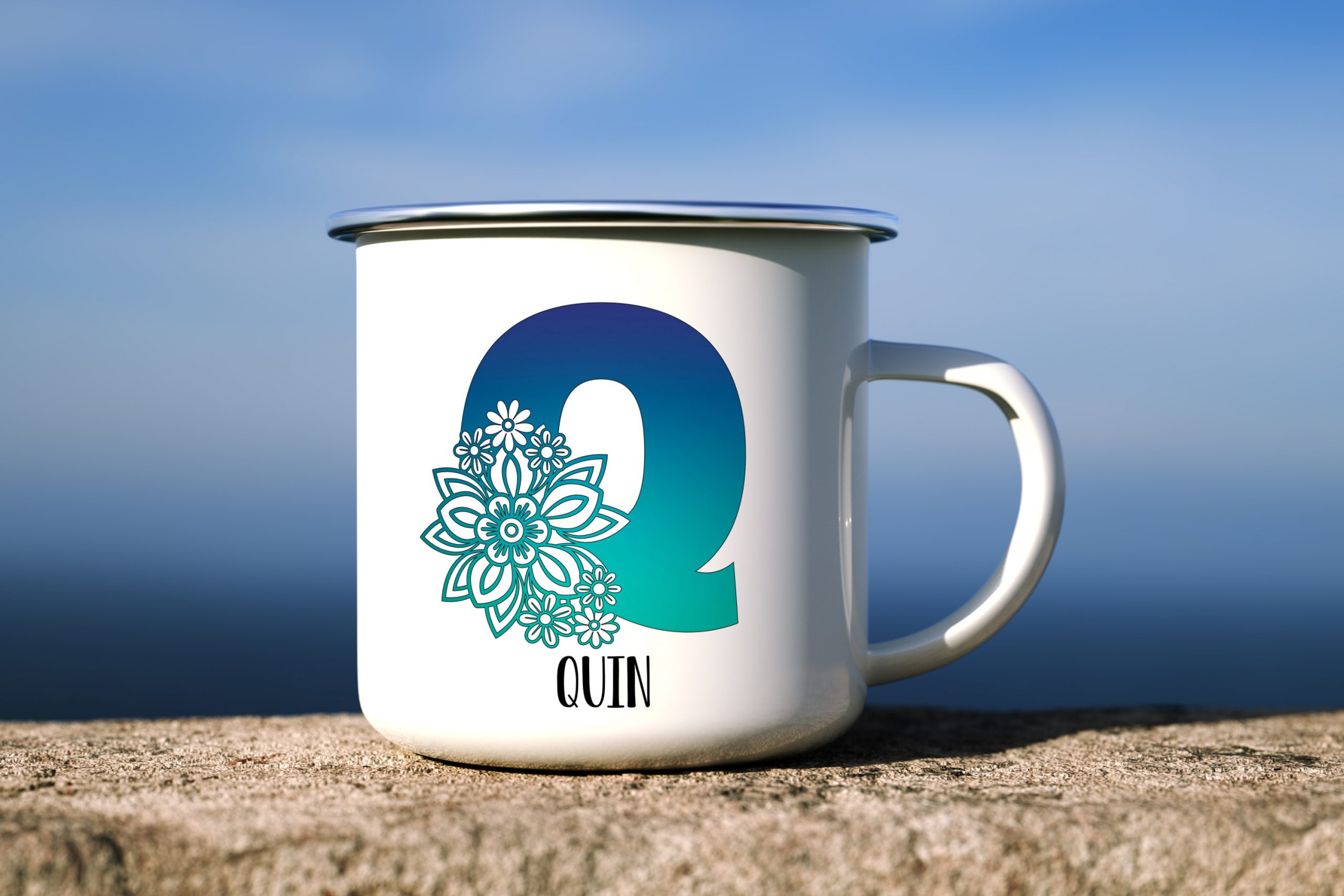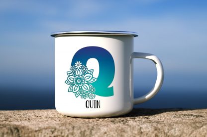 Floral Alphabet Q, Customizable Mug, Enamel Mug