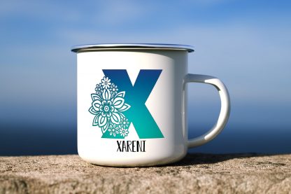 Floral Alphabet X, Customizable Mug, Enamel Mug