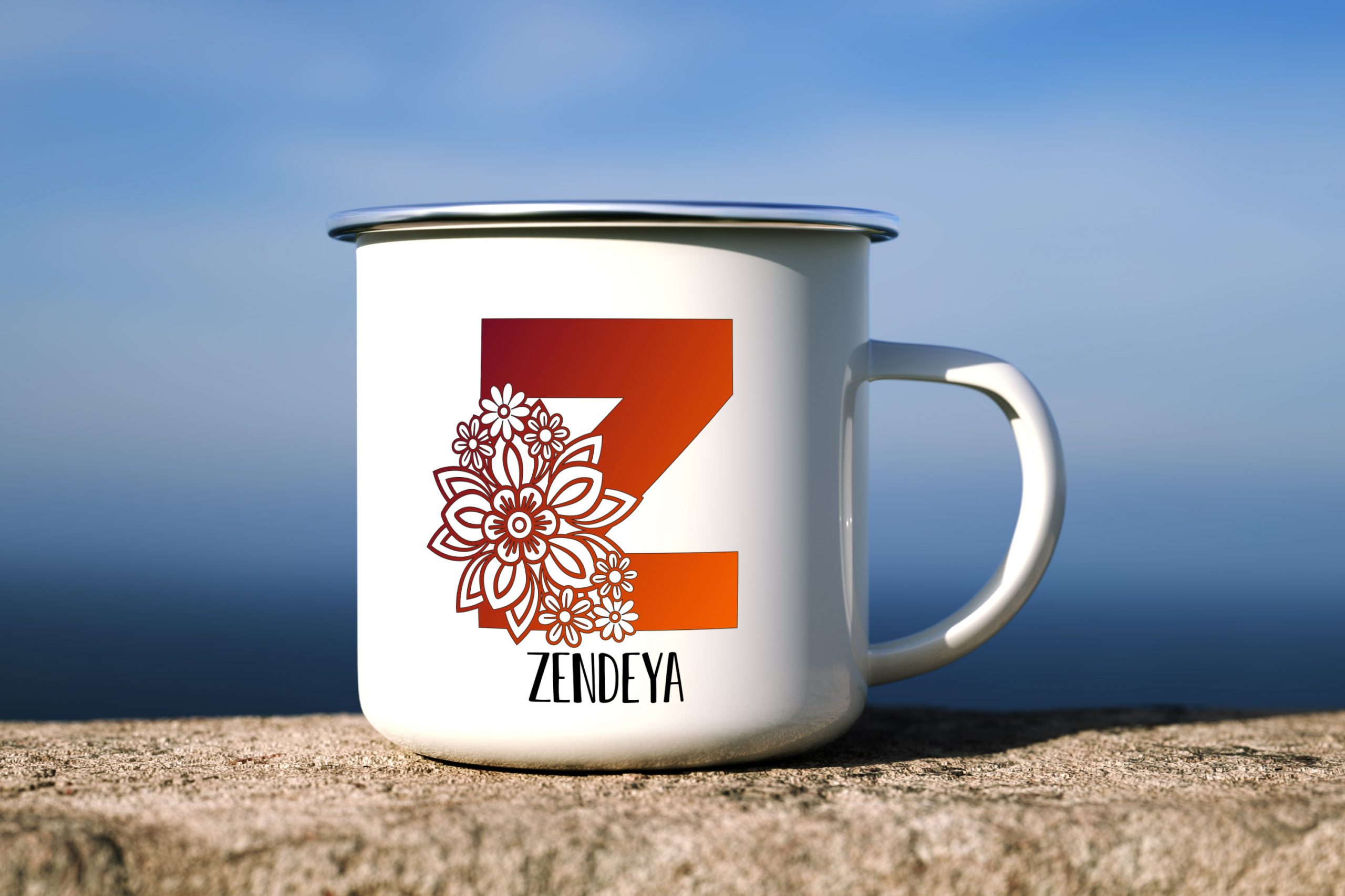 Floral Alphabet Z, Customizable Mug, Enamel Mug