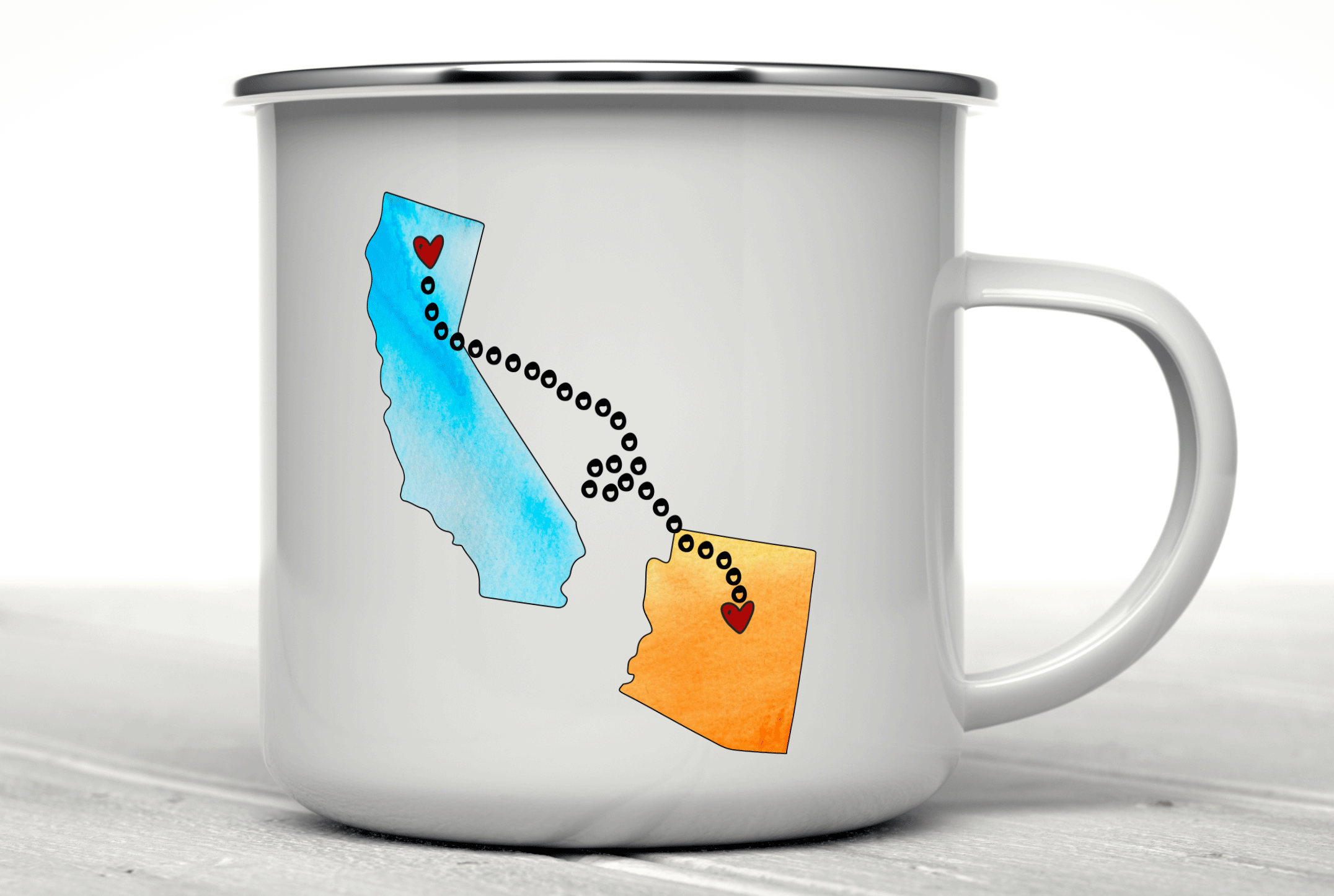 Long Distance Valentine’s Mug, Customized Mug, Enamel Mug