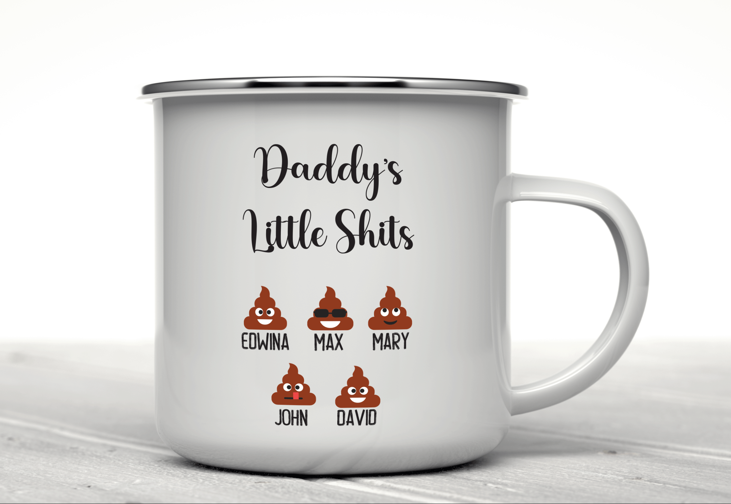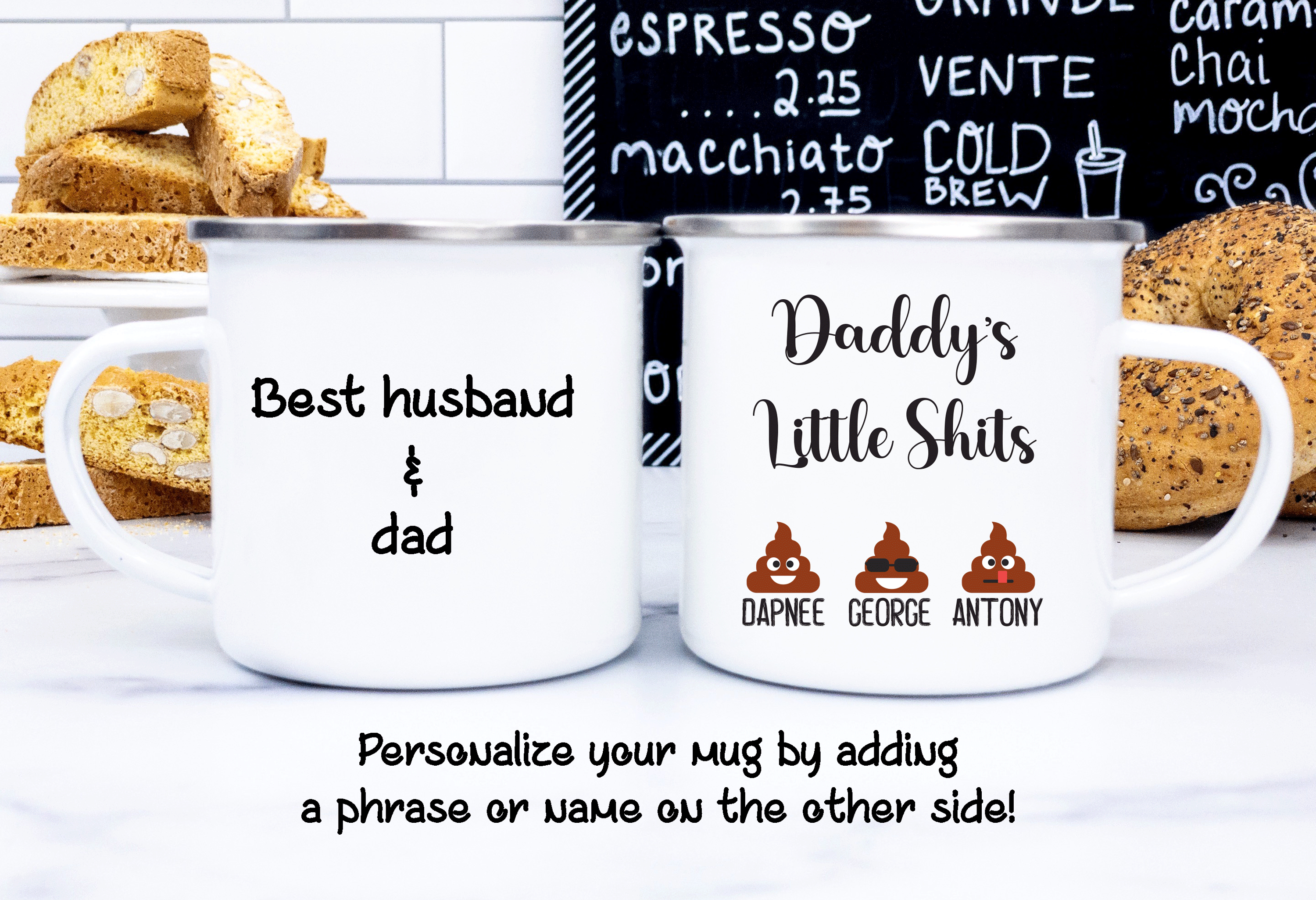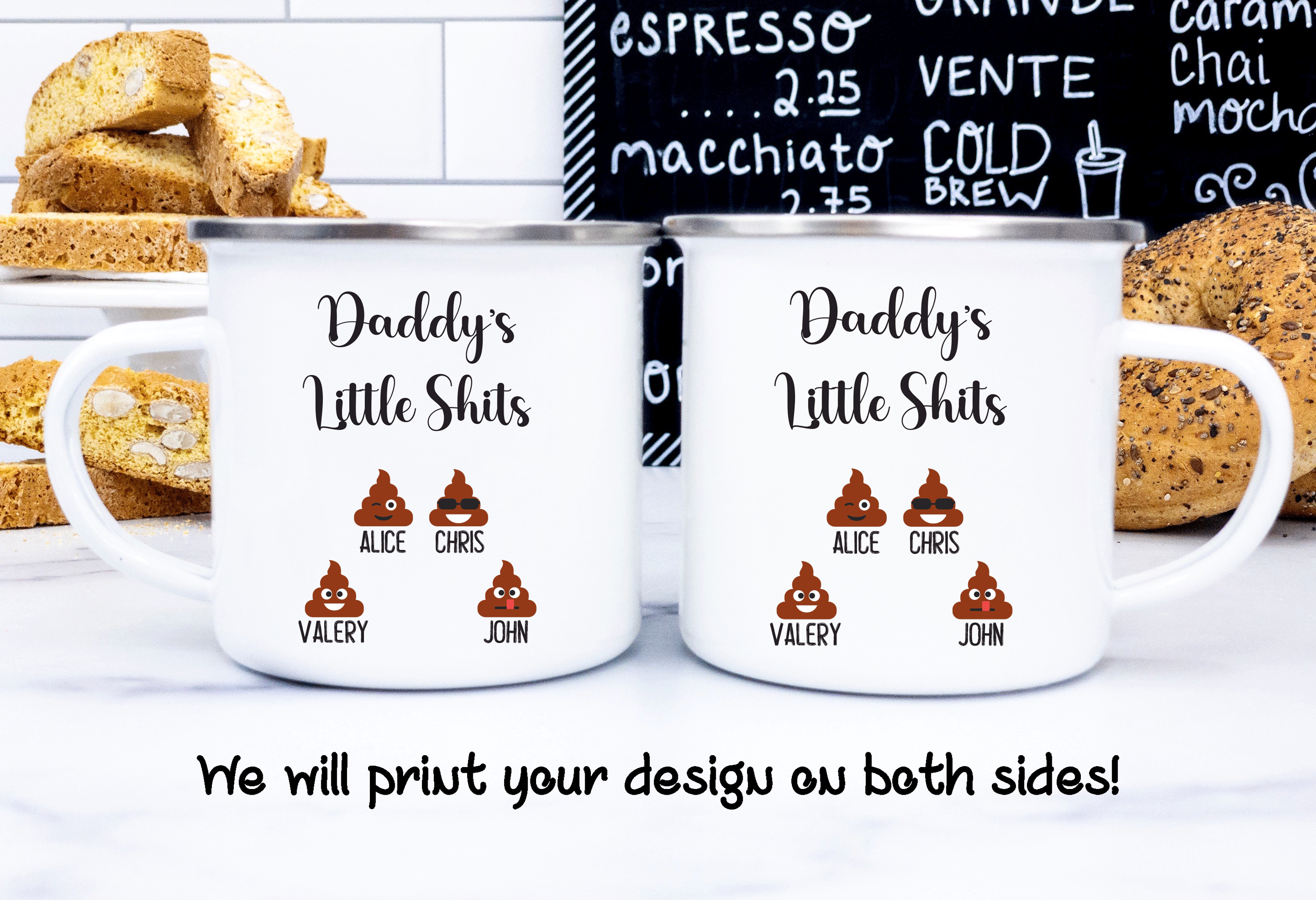 By default, we will print your personalized mug on both sides. You can add to your custom gift a name, phrase, or both, on the mug’s back, as in the pictures. If you want to do it that way, please provide us with as much information as possible in the personalized text box. Please, type the name(s) followed by the emoji option in the personalized text box. We will take care of the rest! It’s your customized mug, so you get to design your gift for dad as you wish!