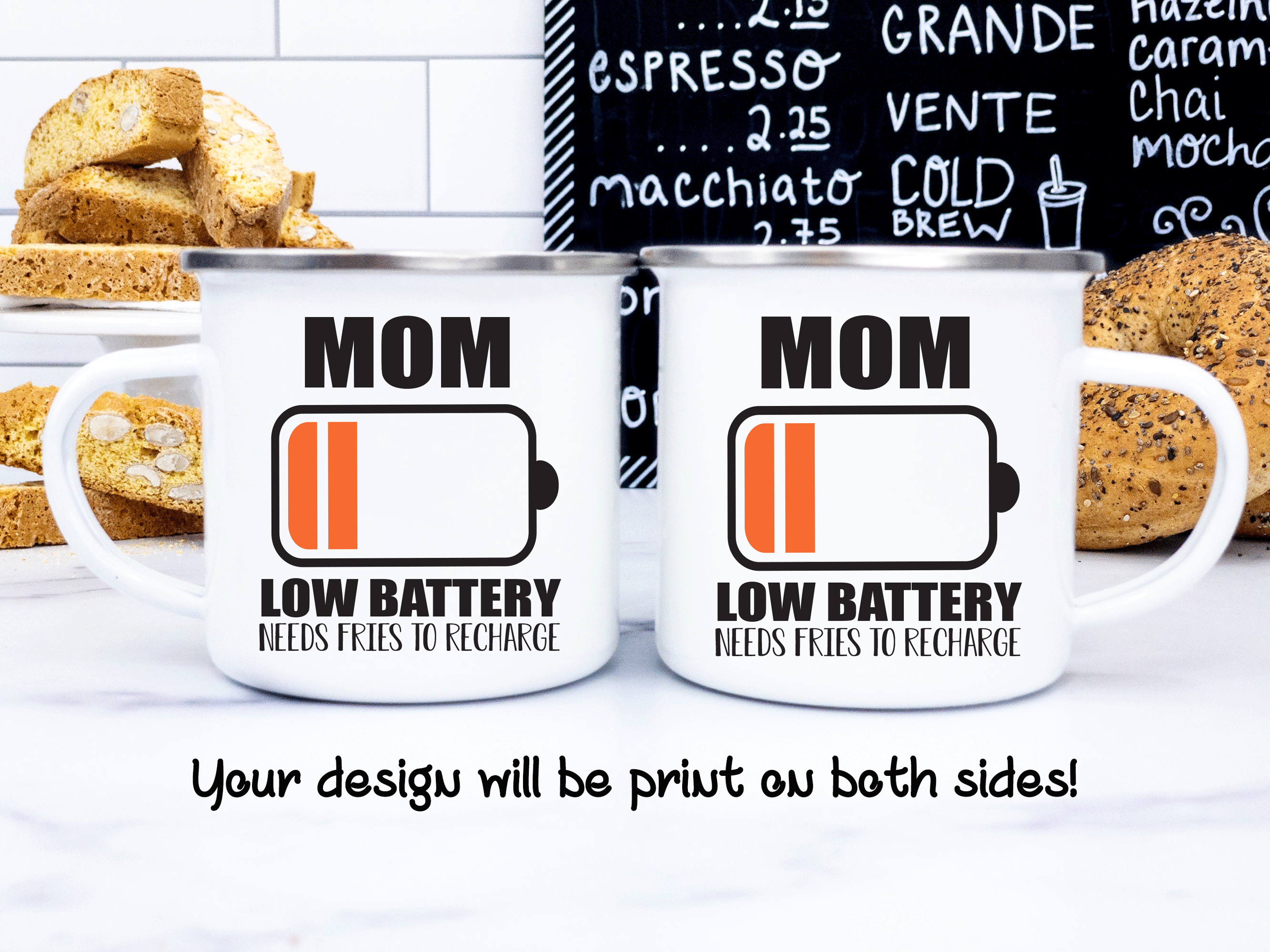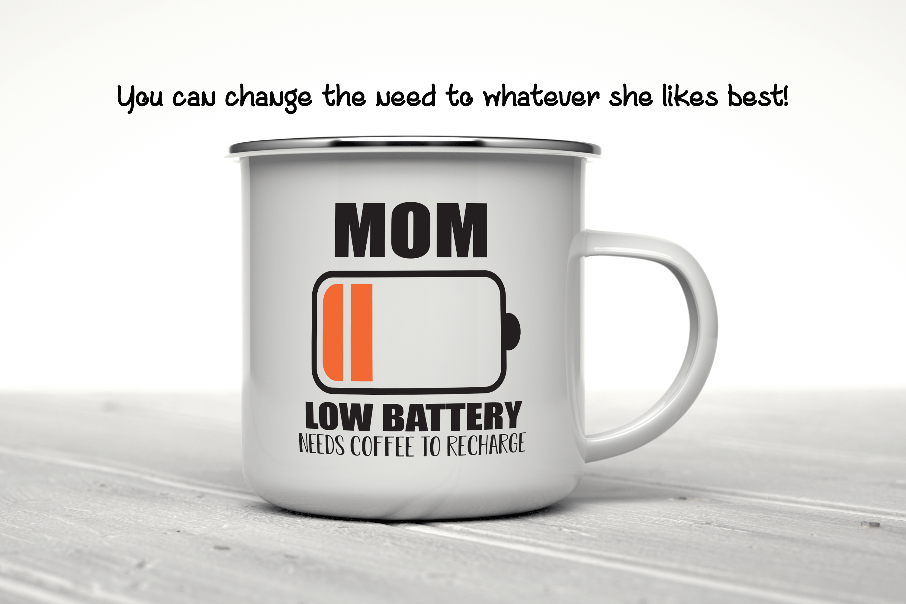 We will print your gift for mom on both sides, and you can choose to put in the back a name, phrase, or both. By default, we will print the mug design on the main picture. If you want to change the phrase “needs chocolate to recharge” to whatever she likes, please provide us with as much information as possible in the personalized text box, and we will take care of the rest. It’s your personalized Mother’s Day mug, so you get to design your gift for her as you wish!