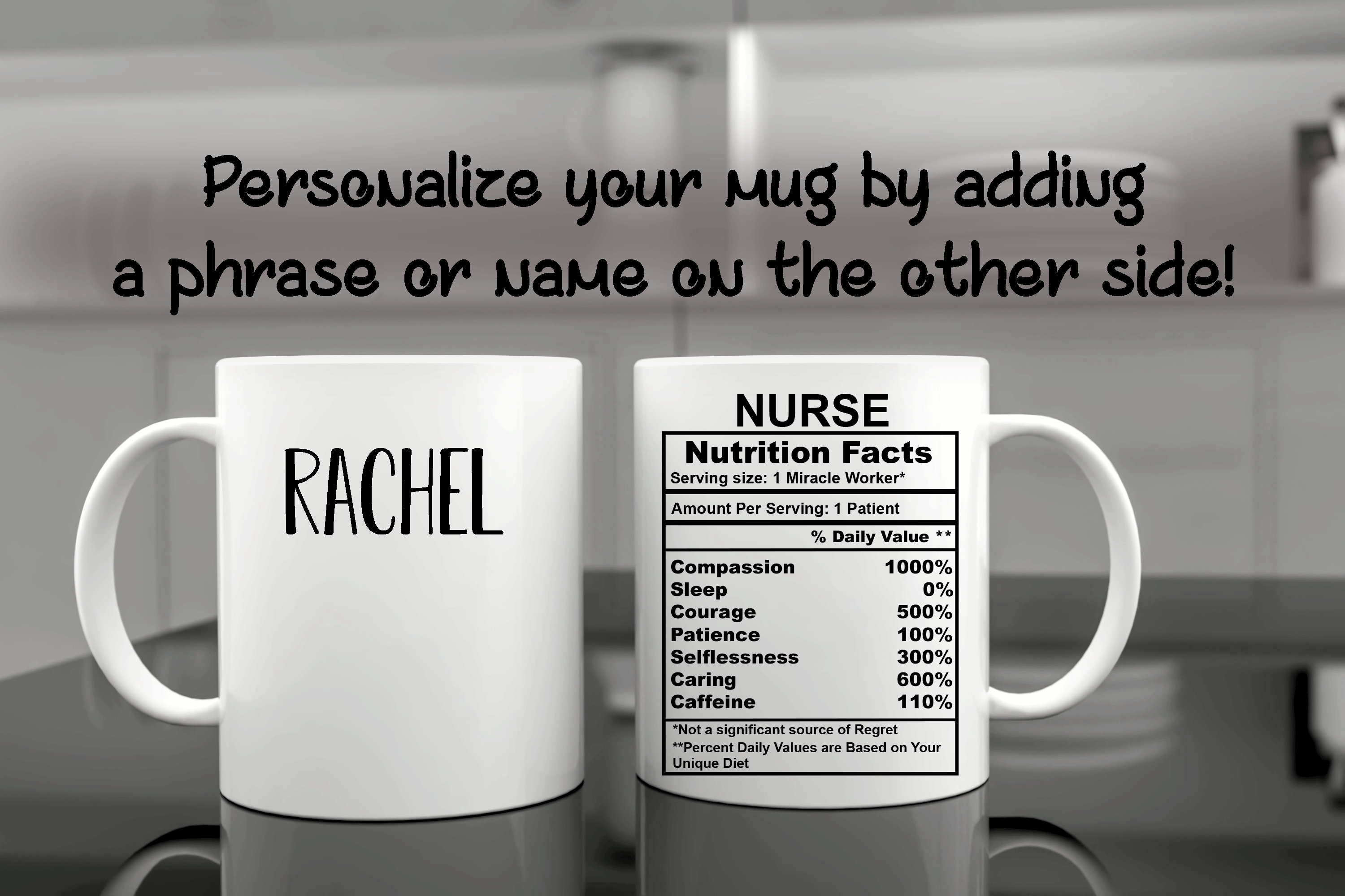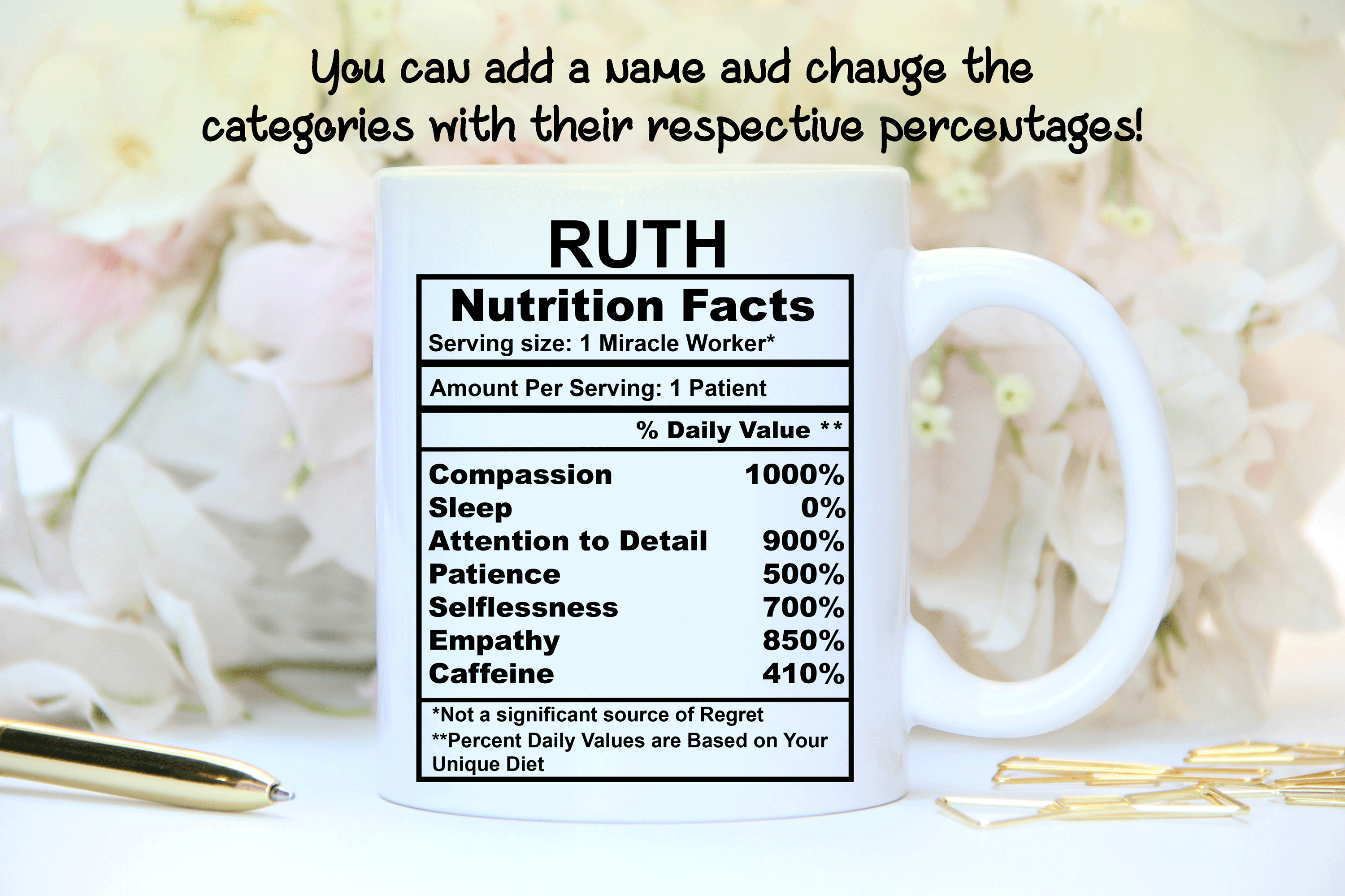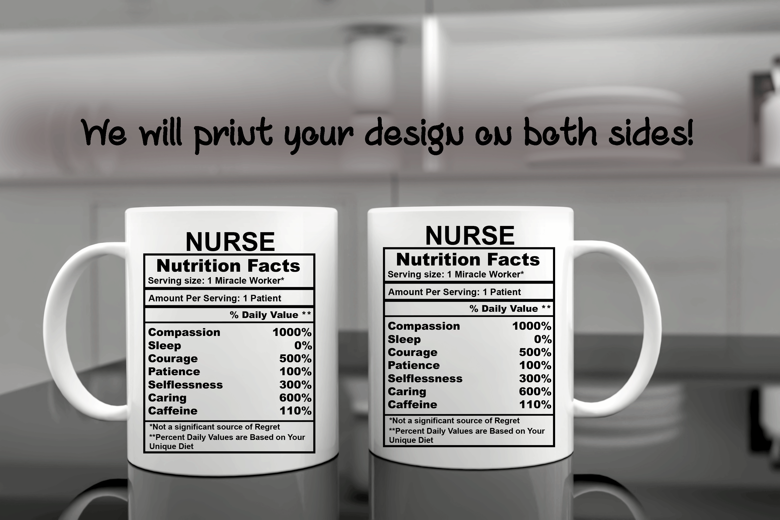 We will print your gift for nurse mug on both sides, and you can choose to put in the back a name, phrase, or both. And if you would like to do it, please specify the text and the typography number you want. By default, we will print the mug design on the main picture. If you choose to add a name or change the categories and their percentages, please provide us with as much information as possible in the personalized text box. We will take care of the rest! It’s your personalized mug, so you get to design your gift for a nurse as you wish!