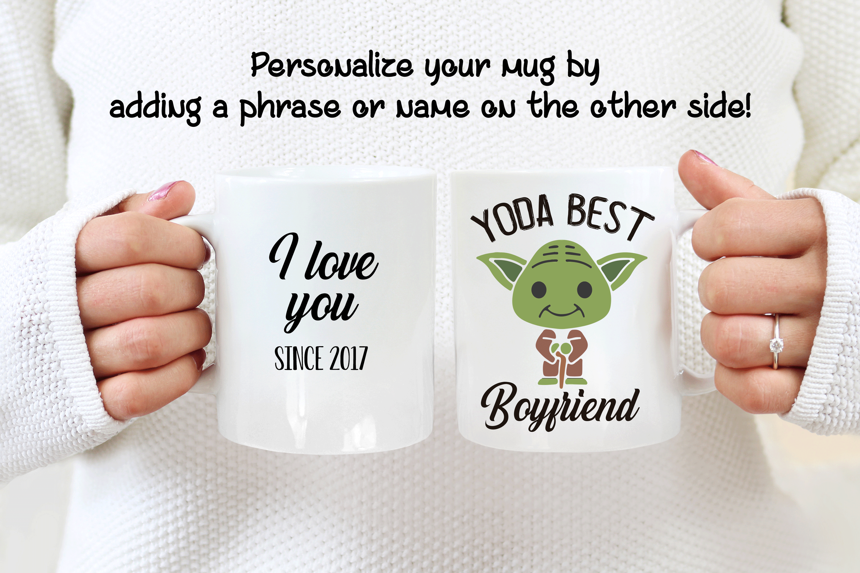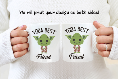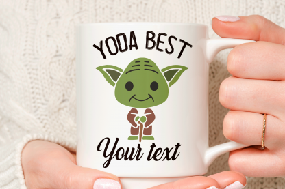 This Baby Yoda Gift is a customized mug where you can change the Yoda Best phrase to whatever that person is the best for you! For example, Yoda Best Boyfriend, Yoda Best Girlfriend, Yoda Best Friend, Yoda Best Sister, etc. Please specify the text you would like for your custom Yoda mug in the personalization box. You can also add a name or phrase to the mug’s back, as in the pictures. If you do so, please help us by specifying it with the font number you want. We will take care of the rest!