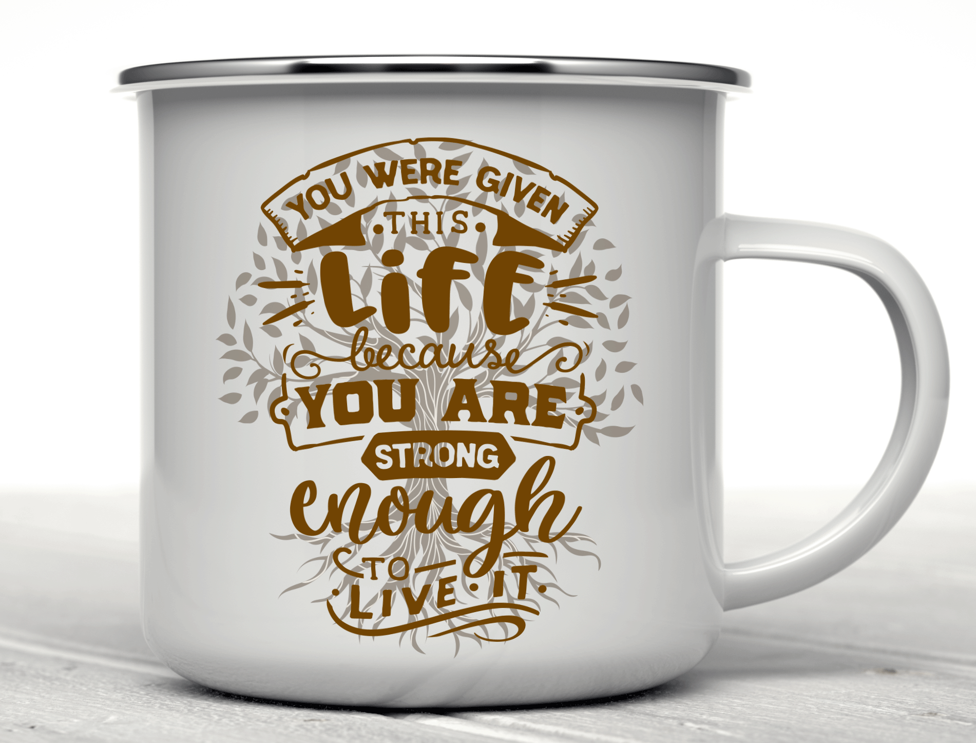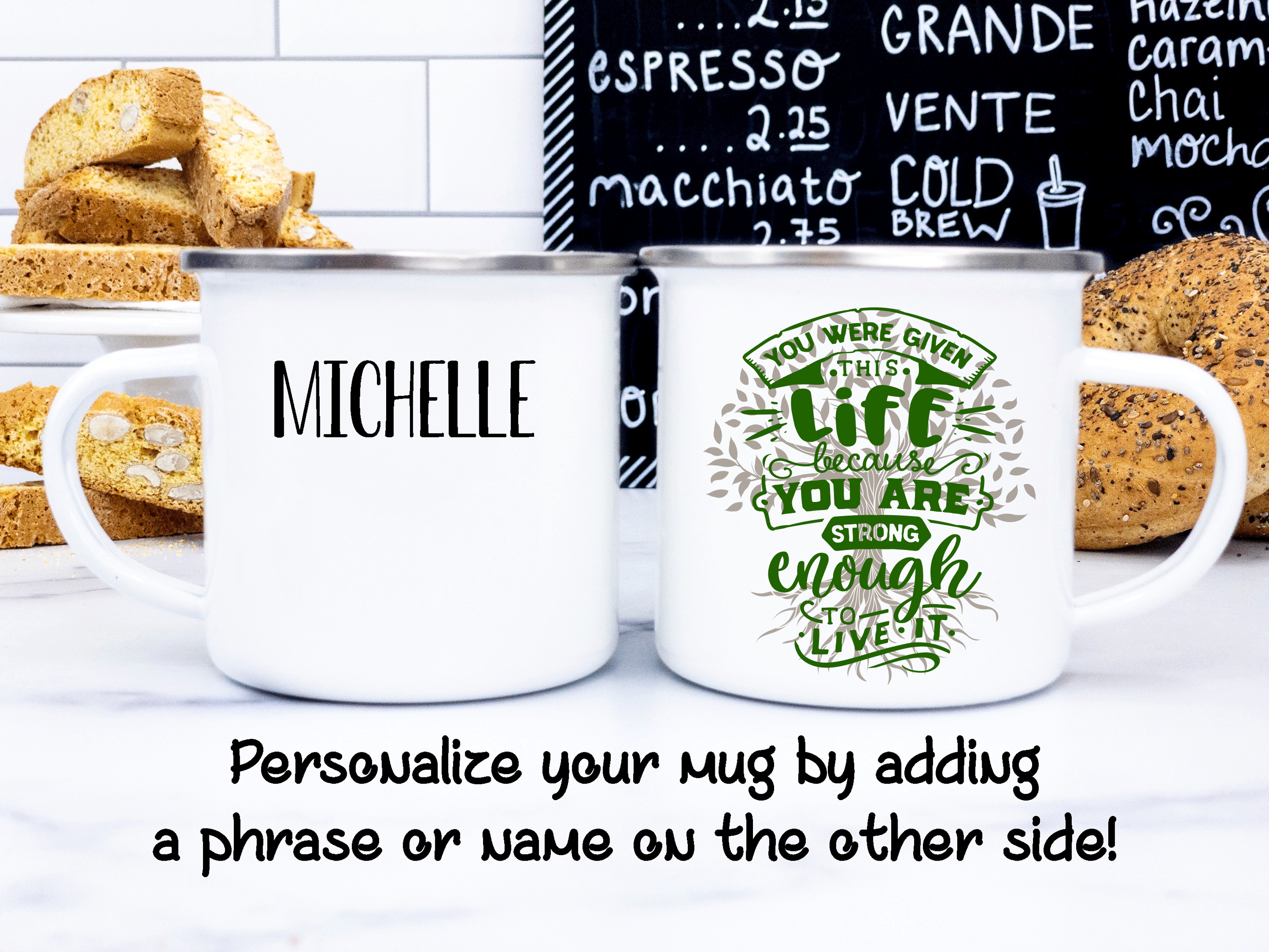 “You were given this life…”, inspirational mug, personalized enamel mug